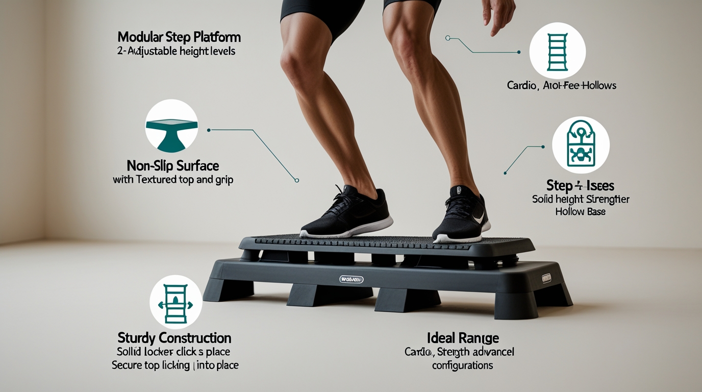 Съемные блоки для регулировки высоты позволяют быстро адаптировать платформу под разные типы упражнений. Качественные блоки должны надежно фиксироваться и не смещаться во время тренировки. Некоторые модели позволяют регулировать высоту с каждой стороны независимо, создавая наклонную поверхность.