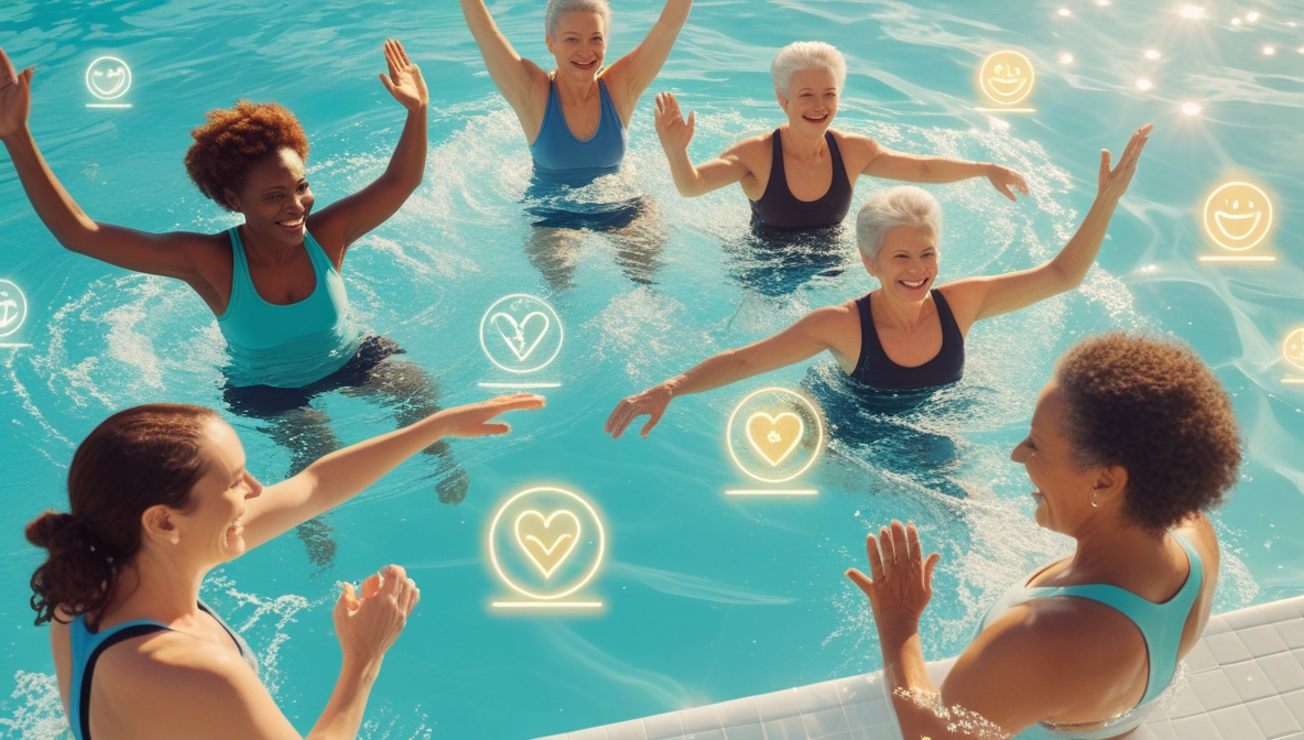 Вода обладает удивительным расслабляющим эффектом. Плавные движения под музыку, сопротивление воды, массажное воздействие — всё это способствует выработке эндорфинов (гормонов счастья) и снижению уровня кортизола (гормона стресса). После тренировки в бассейне вы чувствуете приятную усталость, расслабление и прилив энергии одновременно.