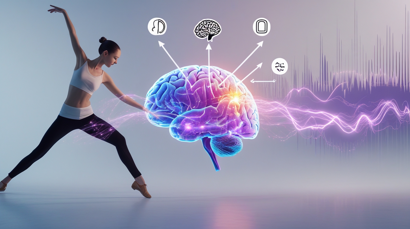 Каждое танцевальное движение — это тысячи сигналов от проприоцепторов в мозг: угол сгибания колена, натяжение икроножной мышцы, давление стопы на пол, положение руки относительно тела. Мозг анализирует этот поток информации и создает детальную карту тела.