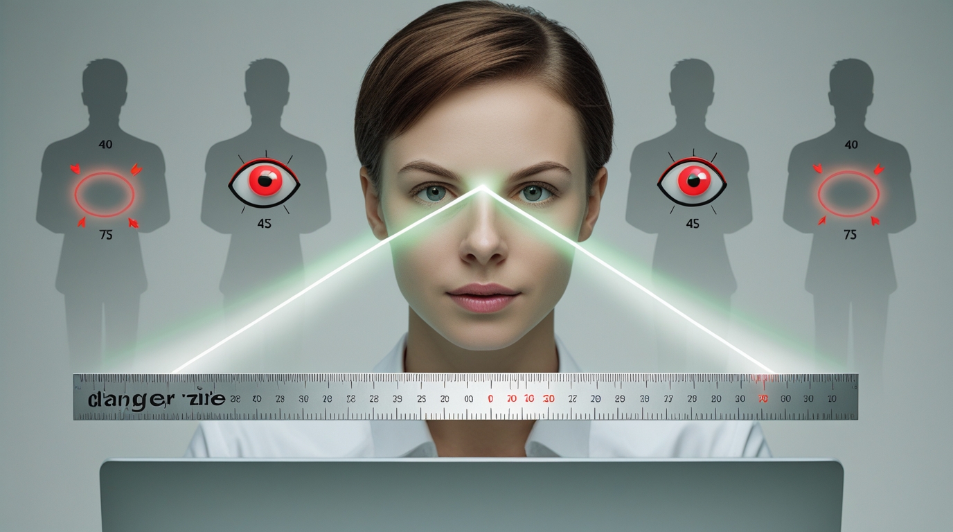 Расстояние от монитора до глаз напрямую влияет на угол зрения и количество движений глазных яблок. При неправильной дистанции просмотра глаза совершают избыточные микродвижения, пытаясь охватить всю площадь экрана. Исследования Всероссийского научно-исследовательского института гигиены показывают, что при расстоянии менее 50 см частота морганий снижается в 5 раз, что приводит к синдрому сухого глаза.