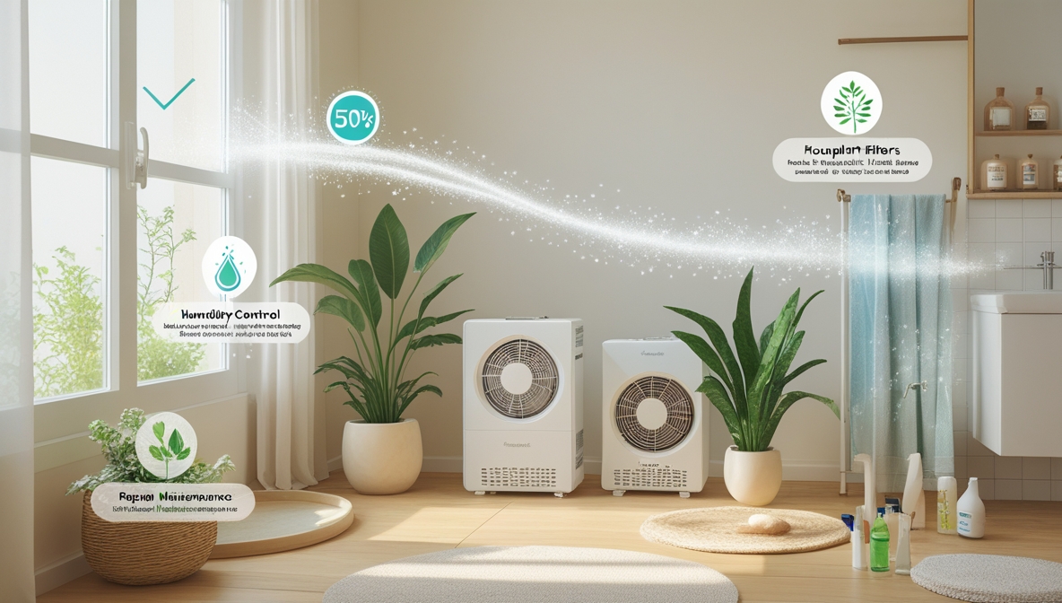 Используйте вытяжные вентиляторы в ванной с датчиками влажности — они автоматически включаются при превышении заданного уровня и работают до нормализации показателей. Это предотвращает накопление влаги и появление плесени.