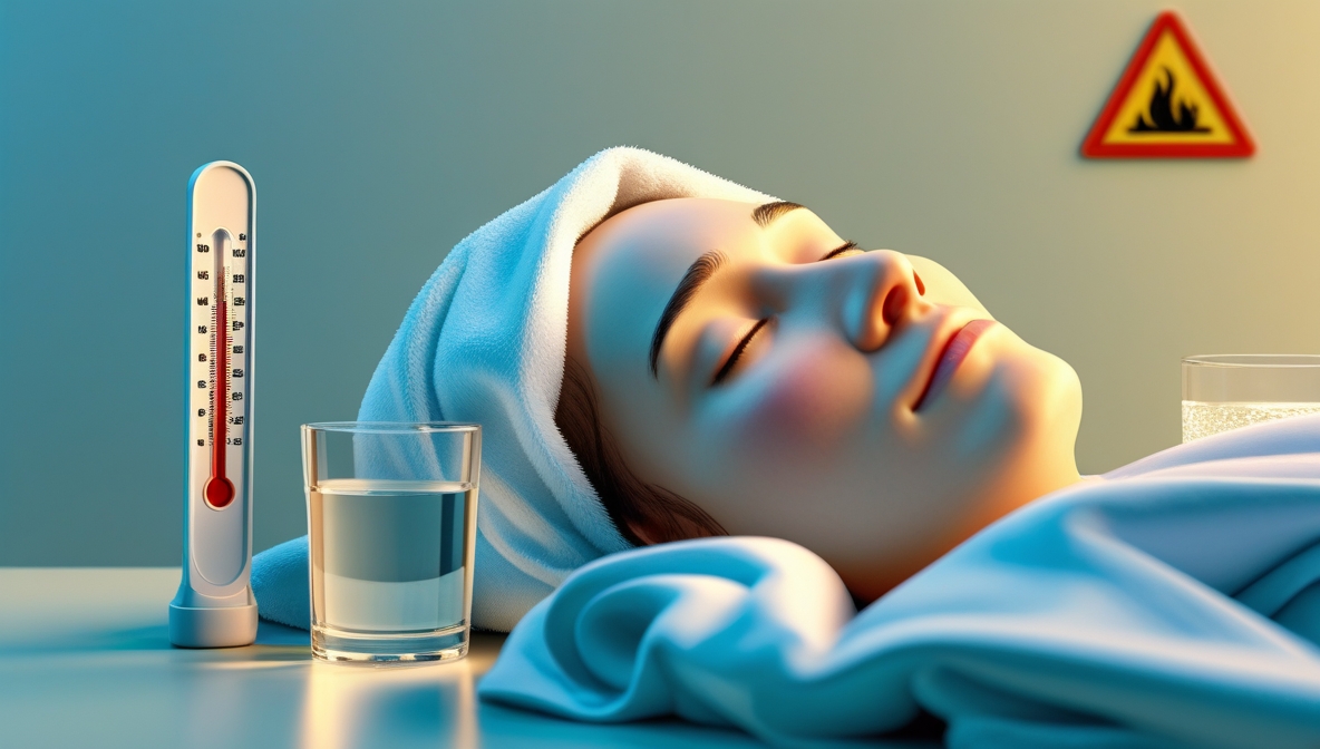 При температуре выше 38,5°C: □ Примите жаропонижающее (парацетамол или ибупрофен) □ Легко оденьтесь, избегайте укутывания □ Протирайте тело прохладной водой □ Пейте больше жидкости □ Контролируйте температуру каждые 2-3 часа