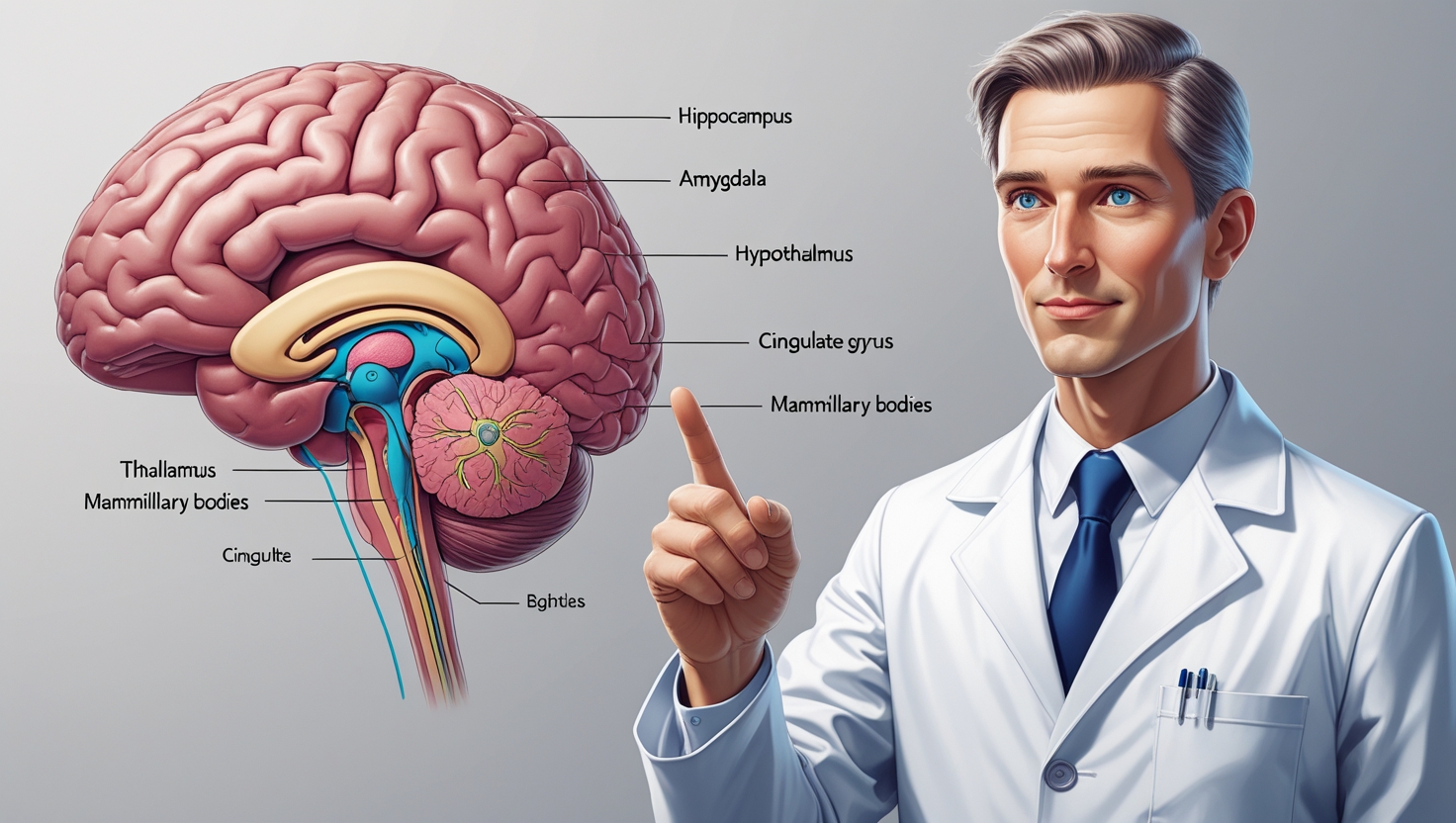 Лимбическая система представляет собой не отдельную структуру, а скопление различных образований головного мозга, расположенных на обеих сторонах таламуса, непосредственно под конечным мозгом. Эта система включает компоненты из конечного мозга, промежуточного мозга (диэнцефалона) и среднего мозга (мезэнцефалона).